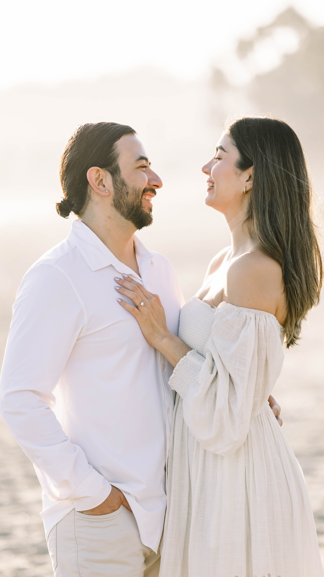 En el invierno del 2017, nos conocimos por primera vez en el trabajo. Lupe evitaba a Dani tanto como podía porque sabía que era guapísima. Hubo una fiesta de trabajo en casa de Lupe y vio la oportunidad perfecta para invitarla y hablar con ella. Después de su primera “cita”, Lupe tuvo que esperar a la siguiente cita para decirle que le gustaba y le dio un piquito la siguiente vez que la vio. Lupe se enamoró de ella por su afición común: la comida. Desde entonces, todo nuestra vida ha girado en torno a la comida y a disfrutarla juntos. Nos encanta pasear, viajar y comer por todo el mundo. En 2020, trajimos a nuestro primer hijo, Kobe (un bulldog inglés), y hemos debatido tener más hijos después de tenerlo (es broma). Cada viaje ha tenido un significado especial para nosotros, pero si tuviéramos que elegir uno, Sudáfrica se ha ganado nuestro corazón. Y sí, París también ocupa un lugar muy especial. El 3 de septiembre de 2024 cumplimos uno de nuestros sueños: comprometernos en la ciudad del amor. Hoy queremos celebrar este camino que hemos recorrido juntos con quienes han sido parte importante de nuestra historia.